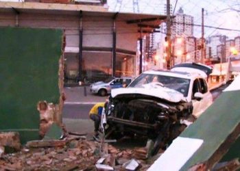 Muro da Serrinha fica destruído após acidente |Foto: Reprodução / TV Anhanguera Muro do Estádio da Serrinha foi parcialmente destruído ...