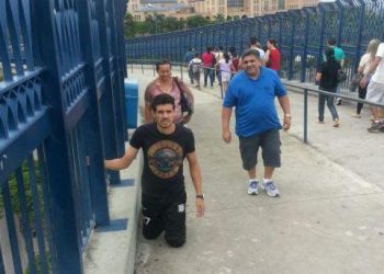 Meio-campista do Figueirense sobe e desce de joelho a rampa da Igreja de Aparecida do Norte