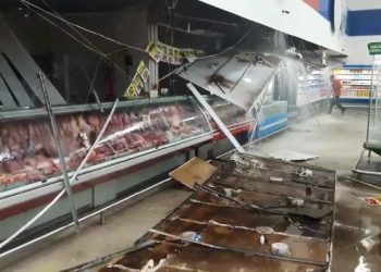 Após temporal que caiu na tarde desta sexta-feira, 31, em toda a Região Metropolitana de Goiânia, o teto de supermercado ...